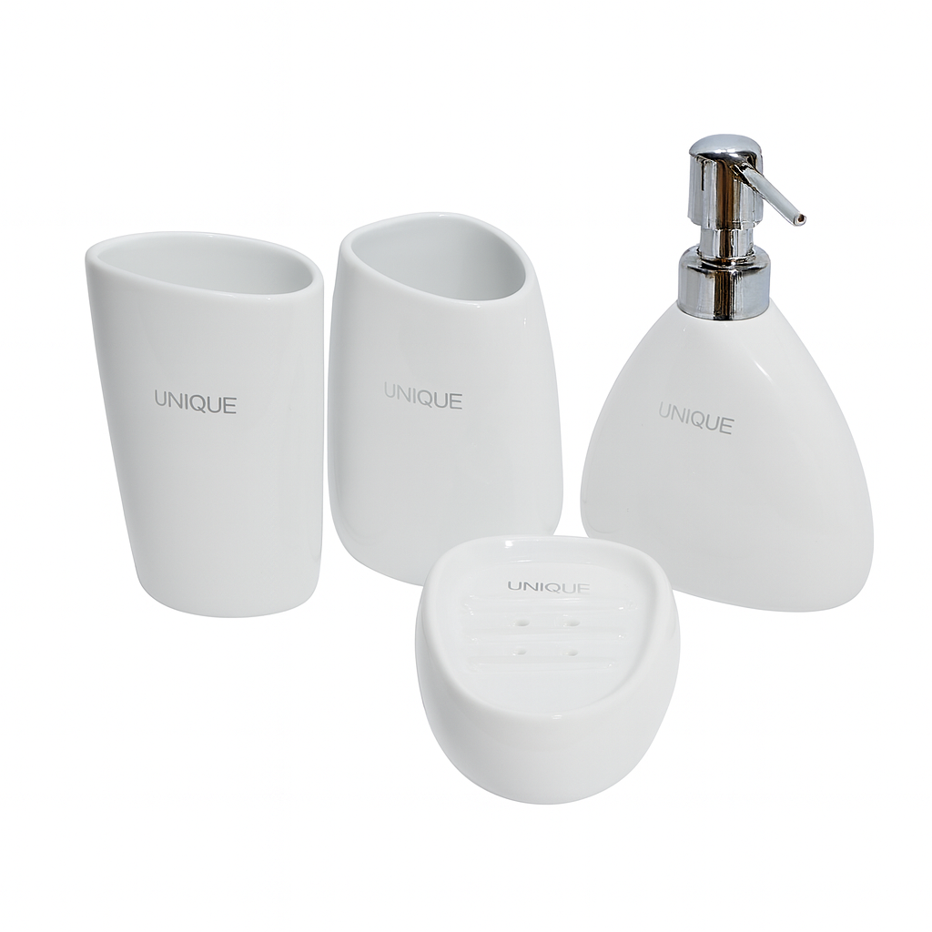 Upgrade your bathroom with the elegant 4 Pcs Ceramic Bathroom Set (GP-10). Designed with a glossy finish in Black and White variants, this set combines style and functionality to keep your space organized.