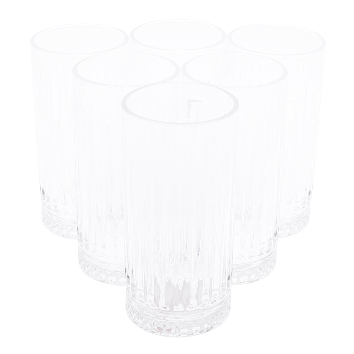 Elevate your drinkware with this 6-piece 285ml clear glass set, designed with vertical ribbed lines that bring a touch of timeless sophistication. Compact in size and versatile in use, these glasses are perfect for both everyday hydration and elegant table settings.