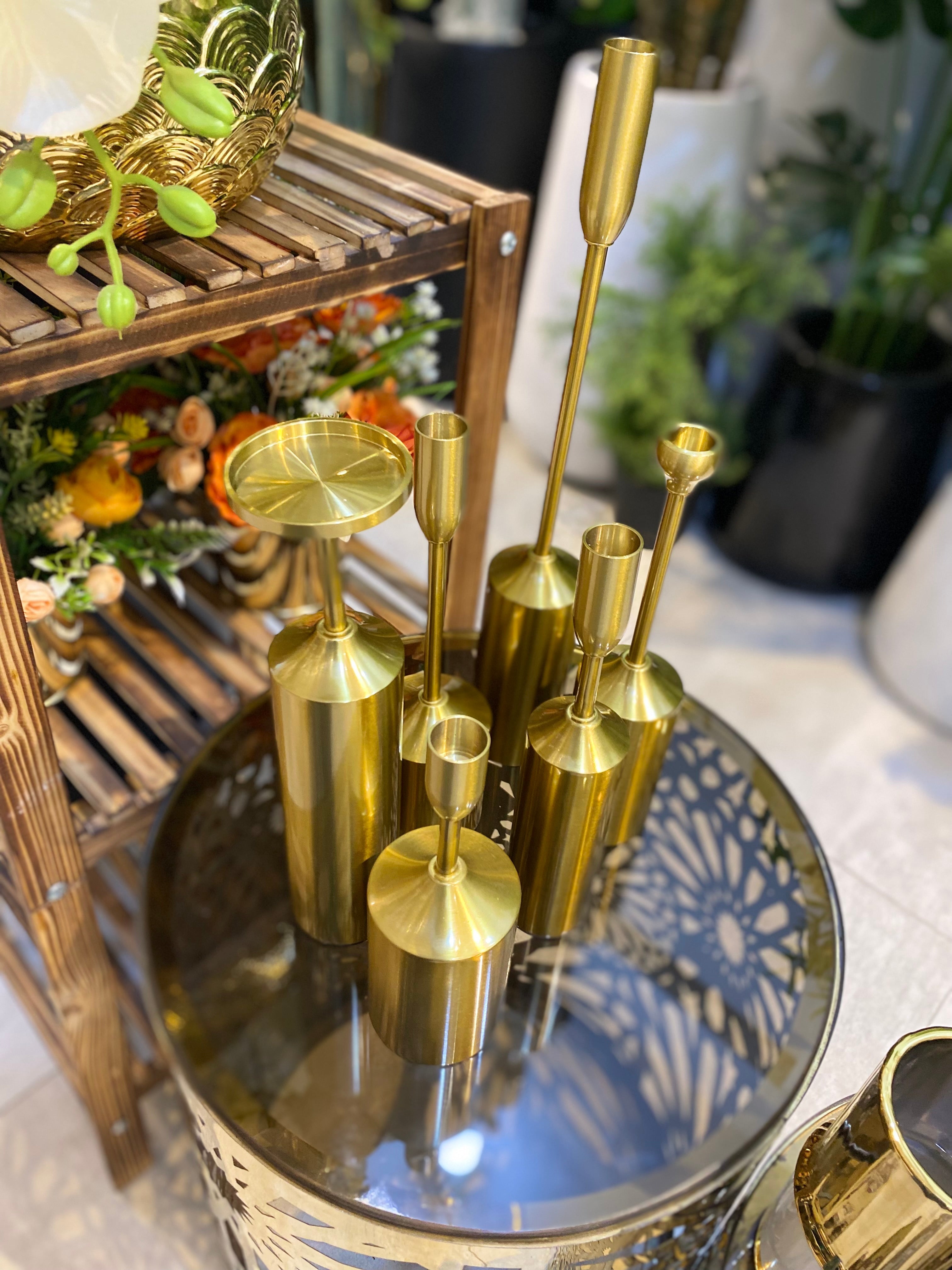 Brass High quality Candle Stands 6pcs - Made of high quality brass material for durability and elegance.