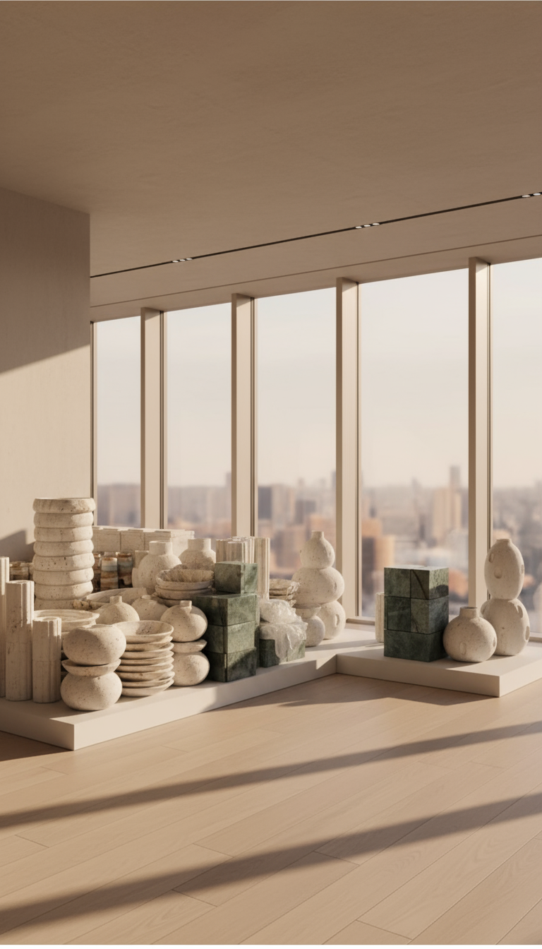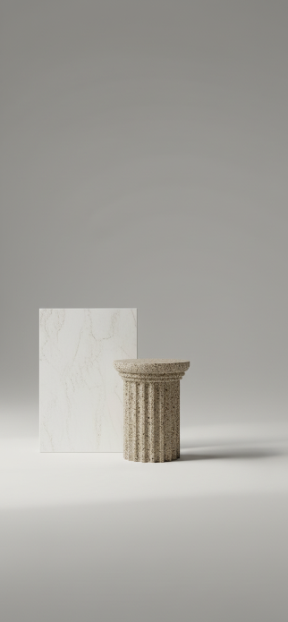 Pedestal Base: Sculpted pedestal with a smooth top for luxury interiors.