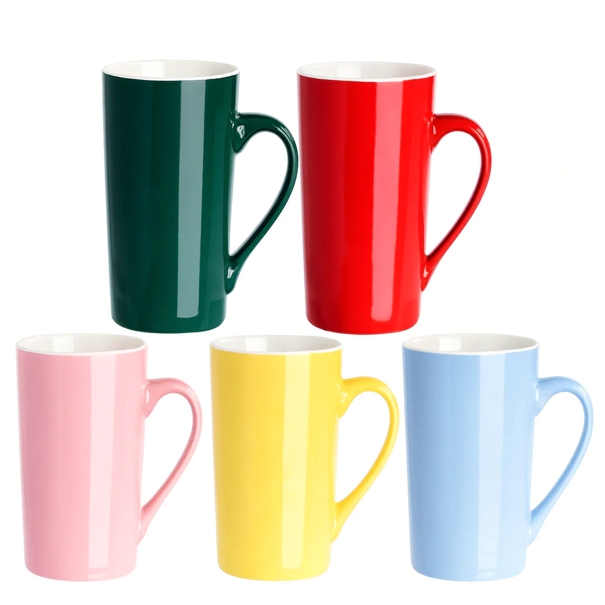 Add a pop of color to your drinkware with the Ceramic Tall Mug Collection. Featuring a sleek tall design and vibrant glossy colors – Red, Blue, Yellow, Pink, and Green – these mugs are perfect for coffee, tea, or lattes. Their tall shape and comfortable handle make them ideal for everyday use.