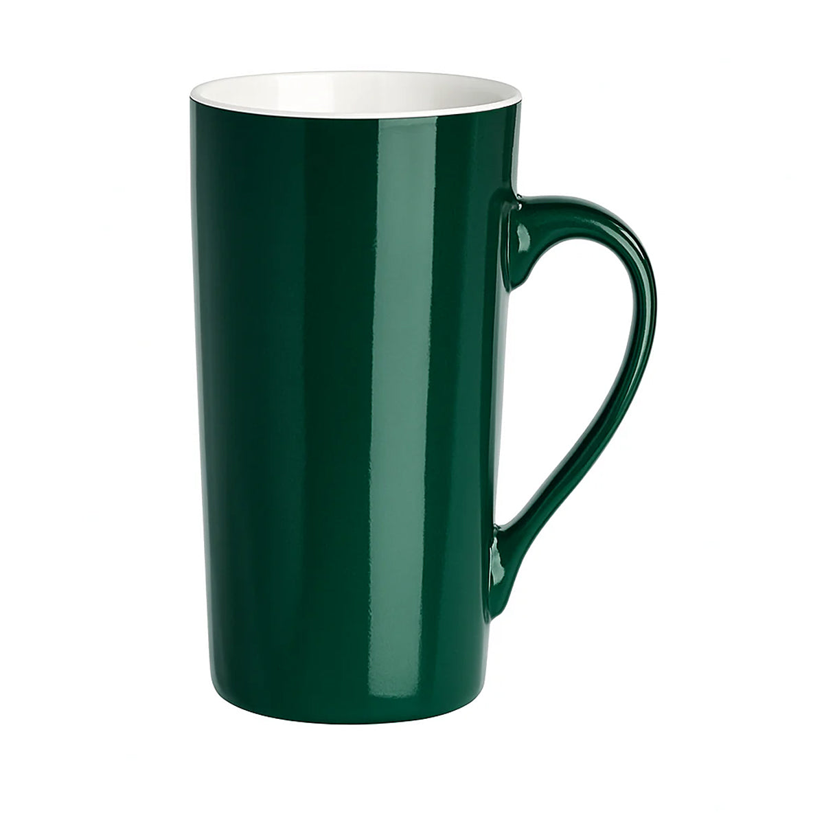 Design: Tall, glossy ceramic mugs with easy-grip handles
