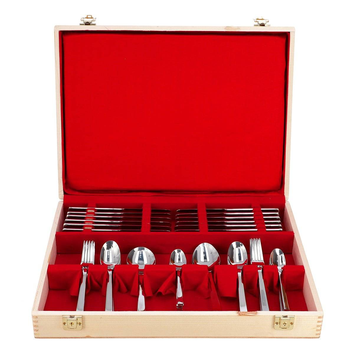 Embellish your dining table with this cutlery set. To bring convenience and luxurious feel. The spoons, forks and knives are specifically designed and trimmed for maximum comfort in hand. The cutlery is rust resistant, durable and long lasting. The cutlery is dishwasher safe. Comes along with beautiful delicate box. Dimension In Inches: Width: 3, Height: 14, Depth: 19, Gross Weight (g): 4.54