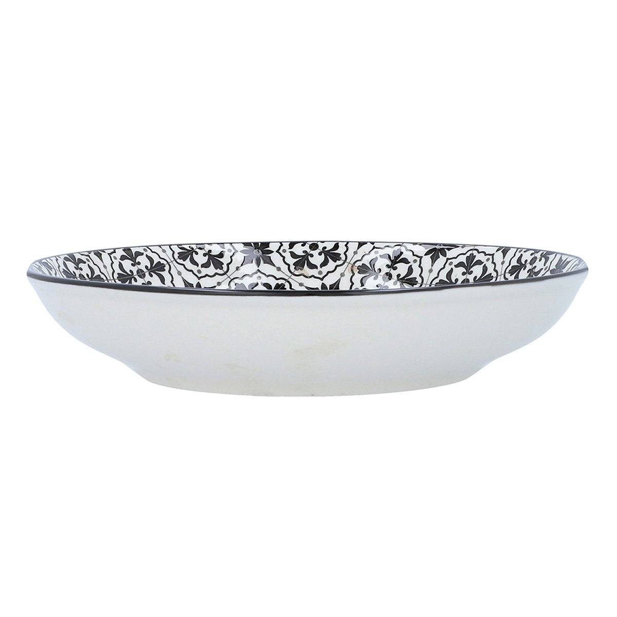 Habbit’s deep plate is an exemplary dinnerware to serve in. A white melamine deep plate with a black artwork design. Made with high-quality melamine, ideal for meals and house-dinner servings. this plate is durable and enduring. Dimension In Inches: Width: 8, Height: 8, Depth: 2, Gross Weight (g): 440
