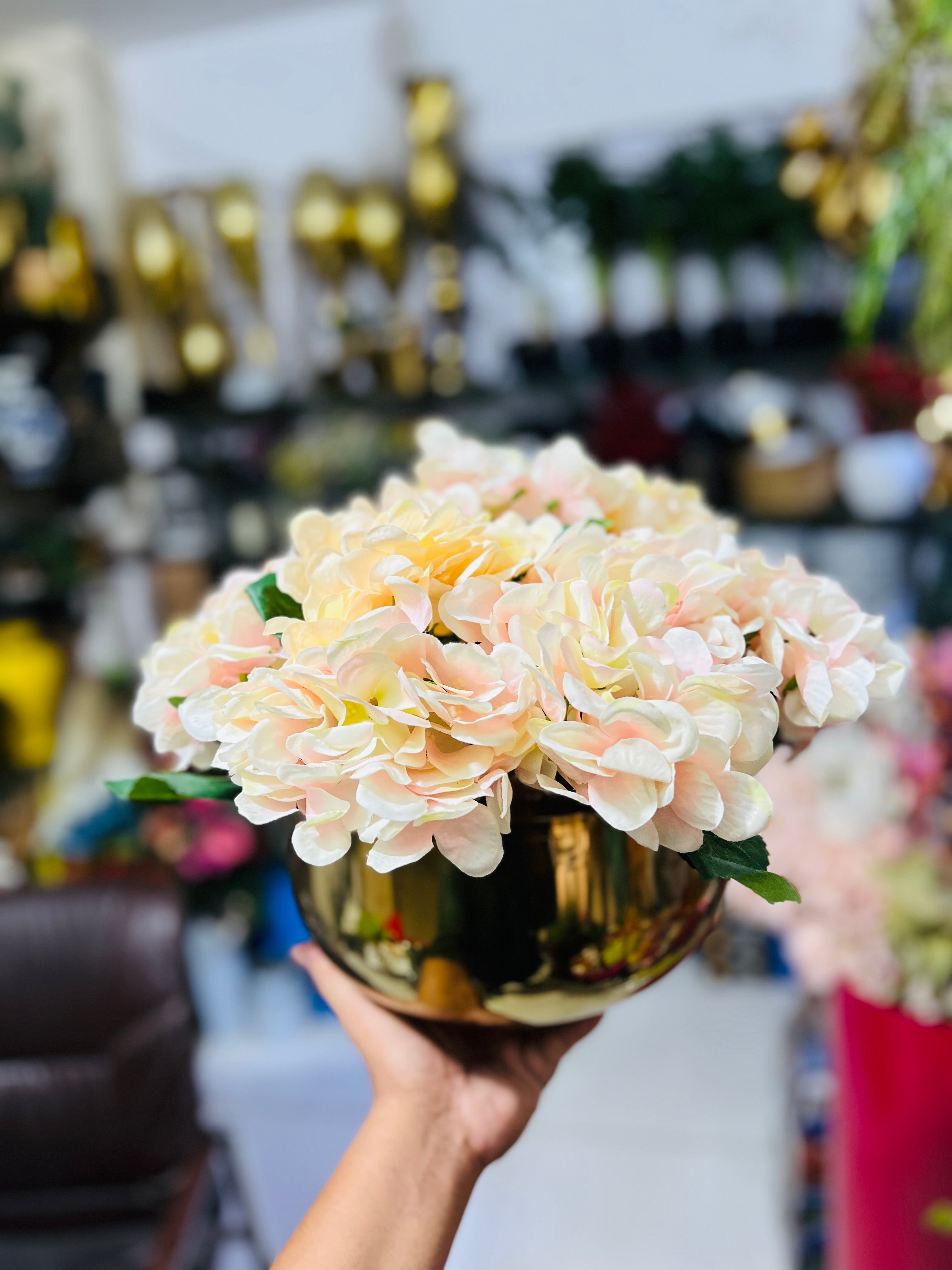 Elegant Golden Stainless Steel Bowl with Artificial Floral Arrangement