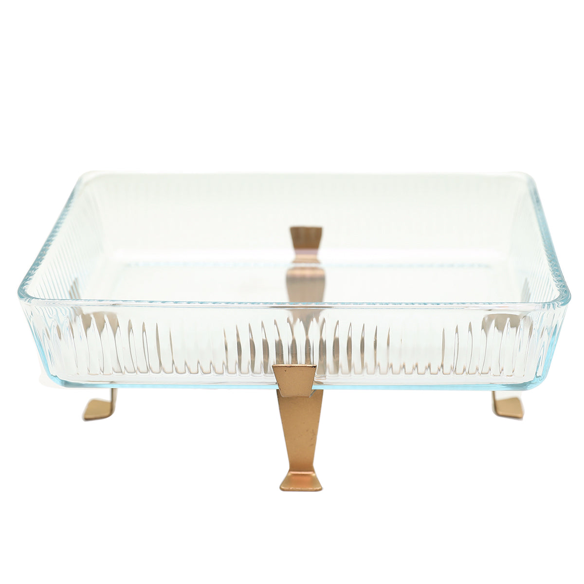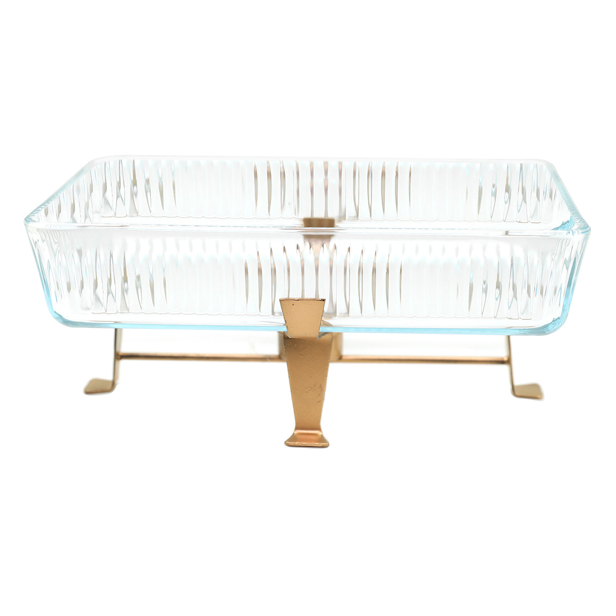 Exquisite ethnic bowl glass dessert dish with an elegantly designed rustic golden metal stand that gives a luxurious feel to your dining table.