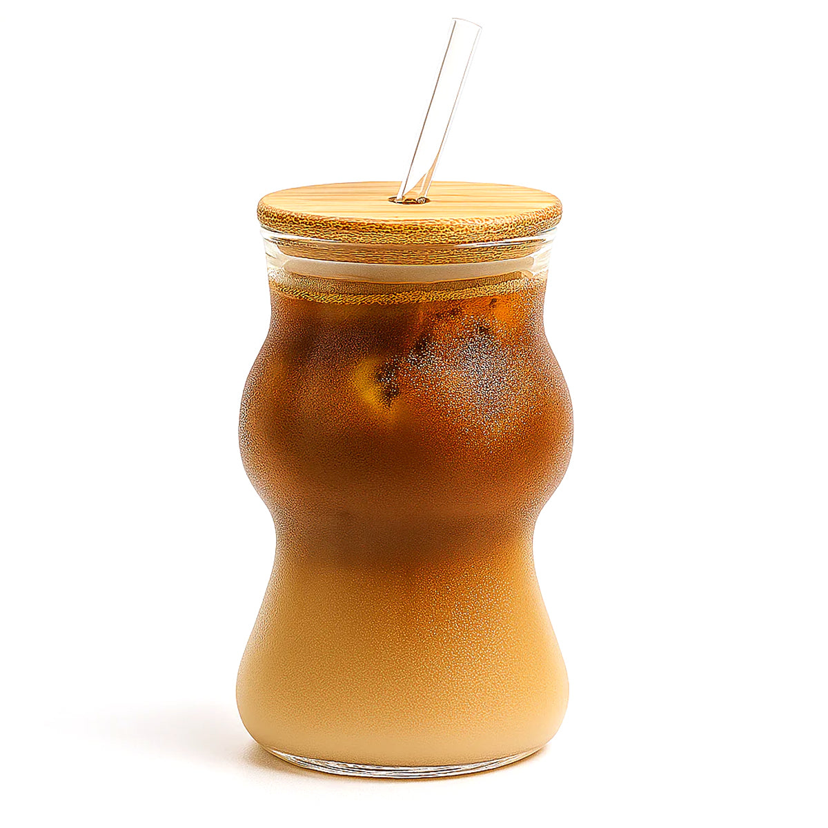 Sip in style with this 450ml eco-friendly glass tumbler featuring a reusable straw and natural bamboo lid. Perfect for iced coffee, smoothies, detox water, or fresh juices, this curved silhouette tumbler adds a modern touch to your daily routine. Lightweight, elegant, and reusable – ideal for home, office, or on the go.