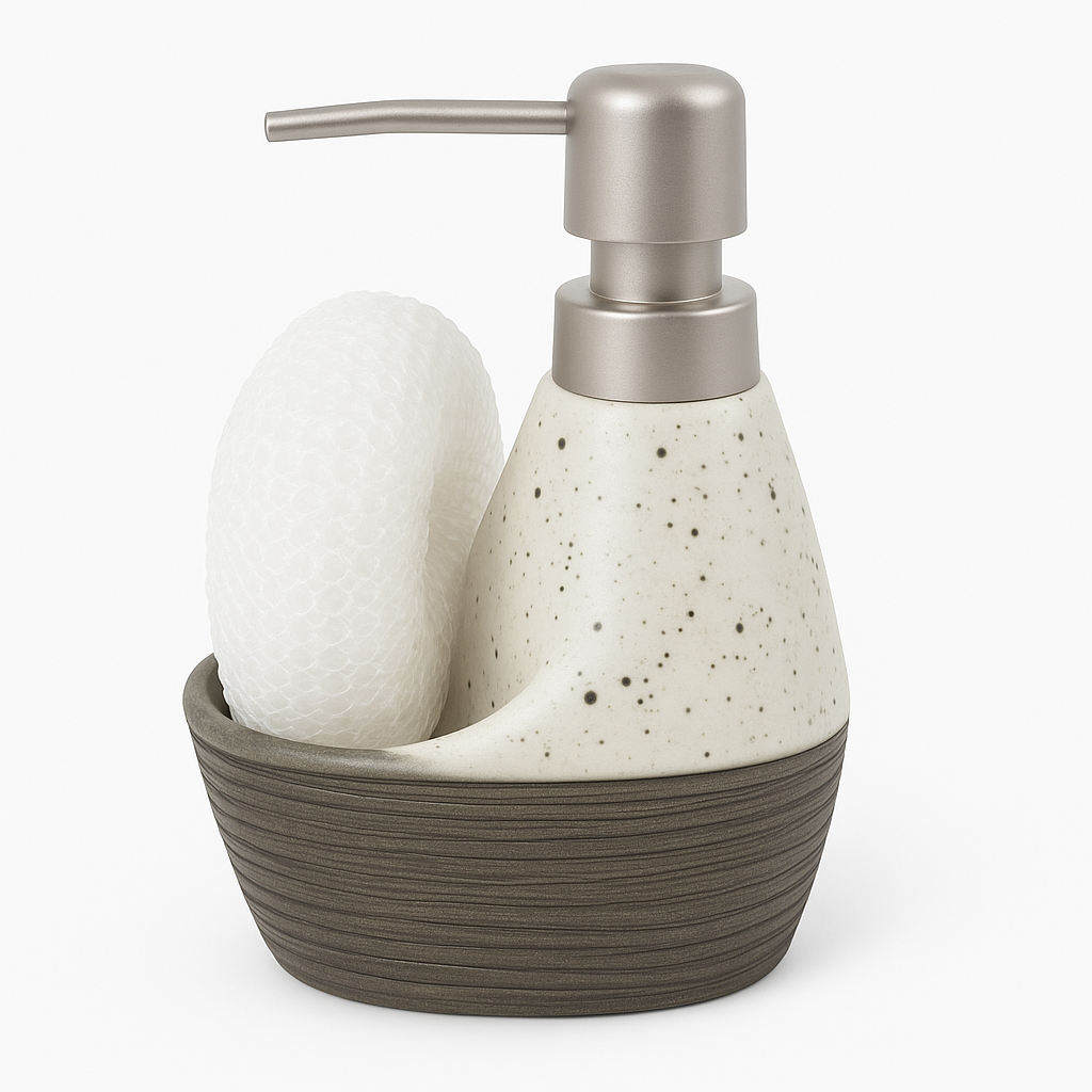 Upgrade your sink area with this modern soap dispenser with sponge holder, designed for both style and functionality. Perfect for kitchens or bathrooms, this dispenser keeps liquid soap and dish sponges neatly organized in one place. Available in three elegant color variants – green, brown, and white – it blends seamlessly with any décor.