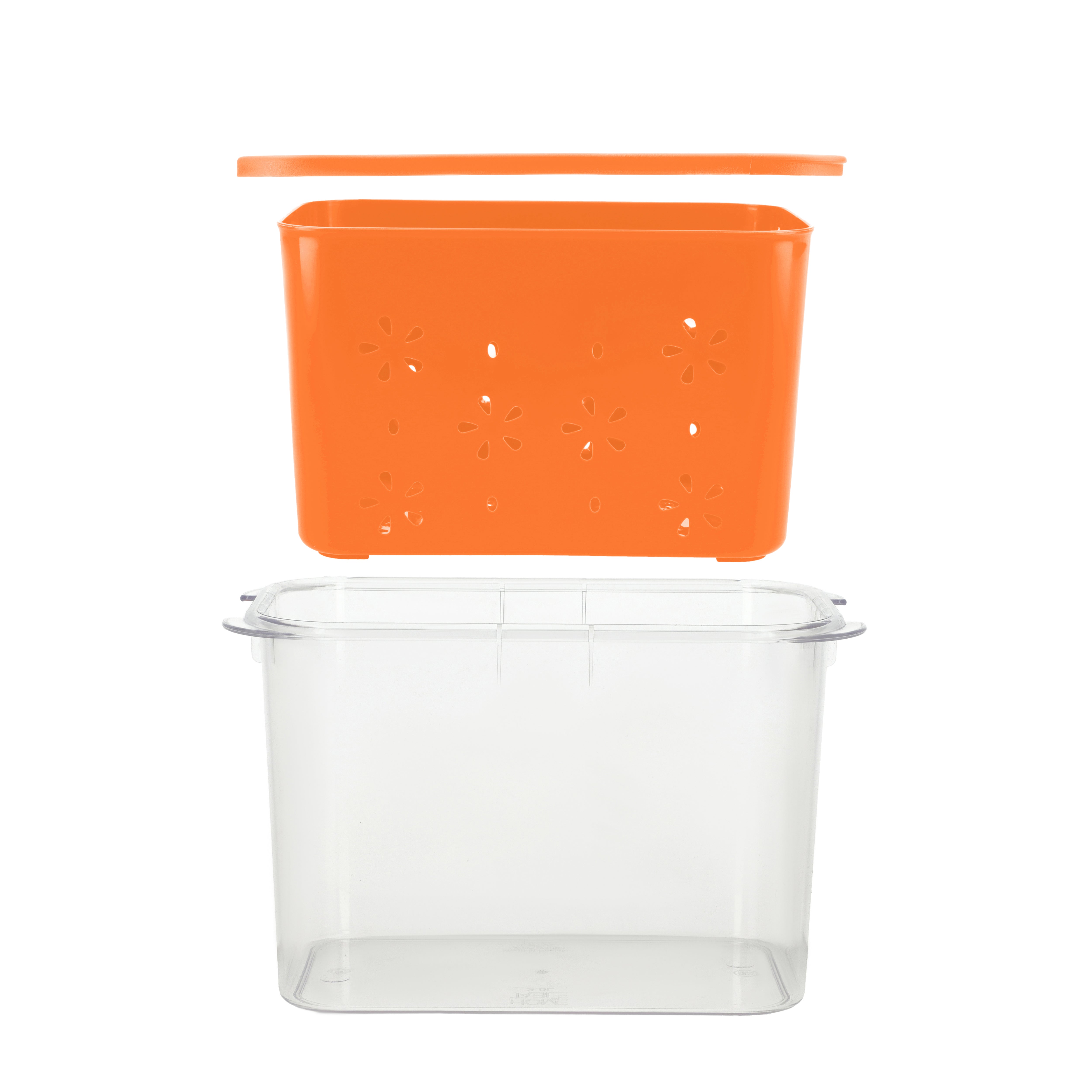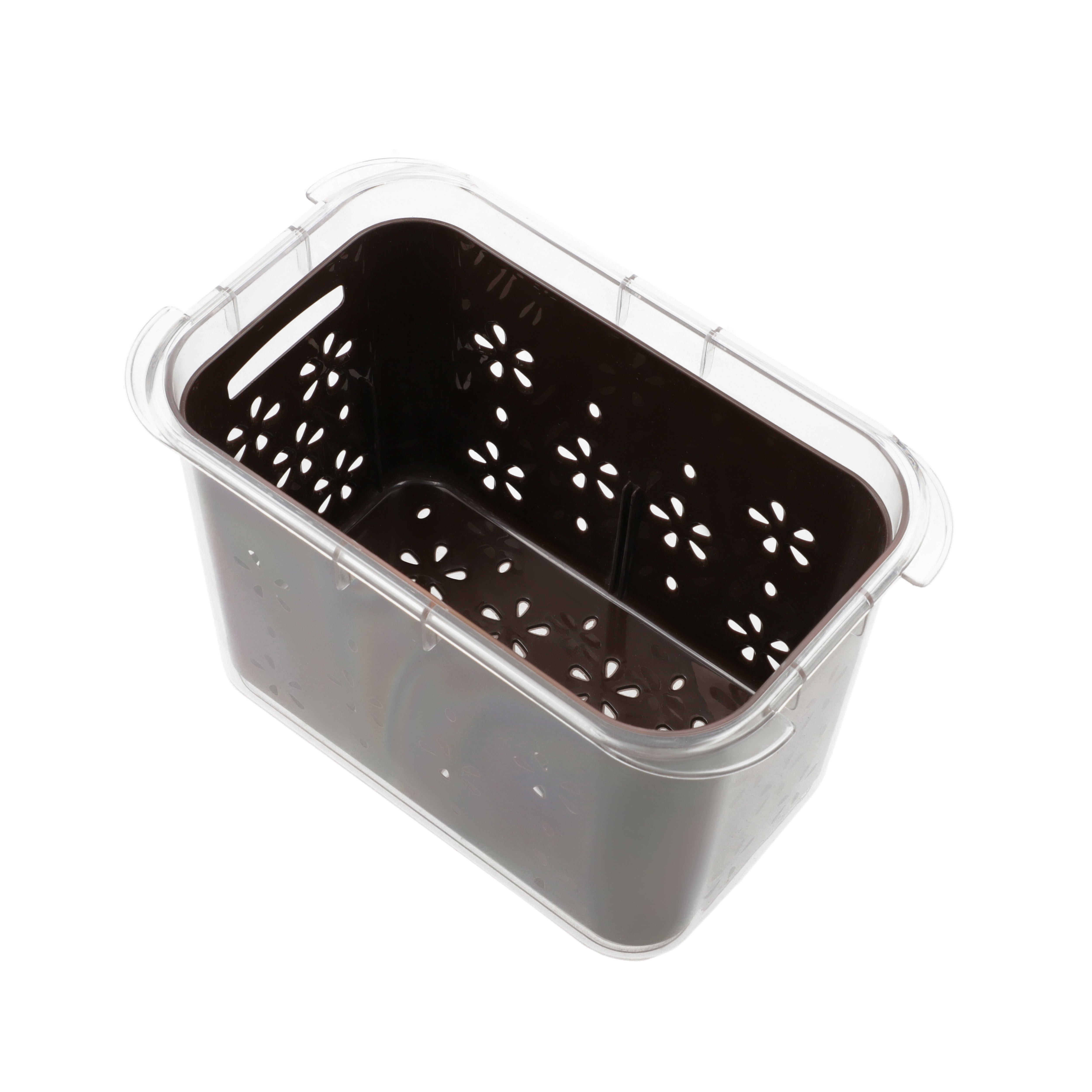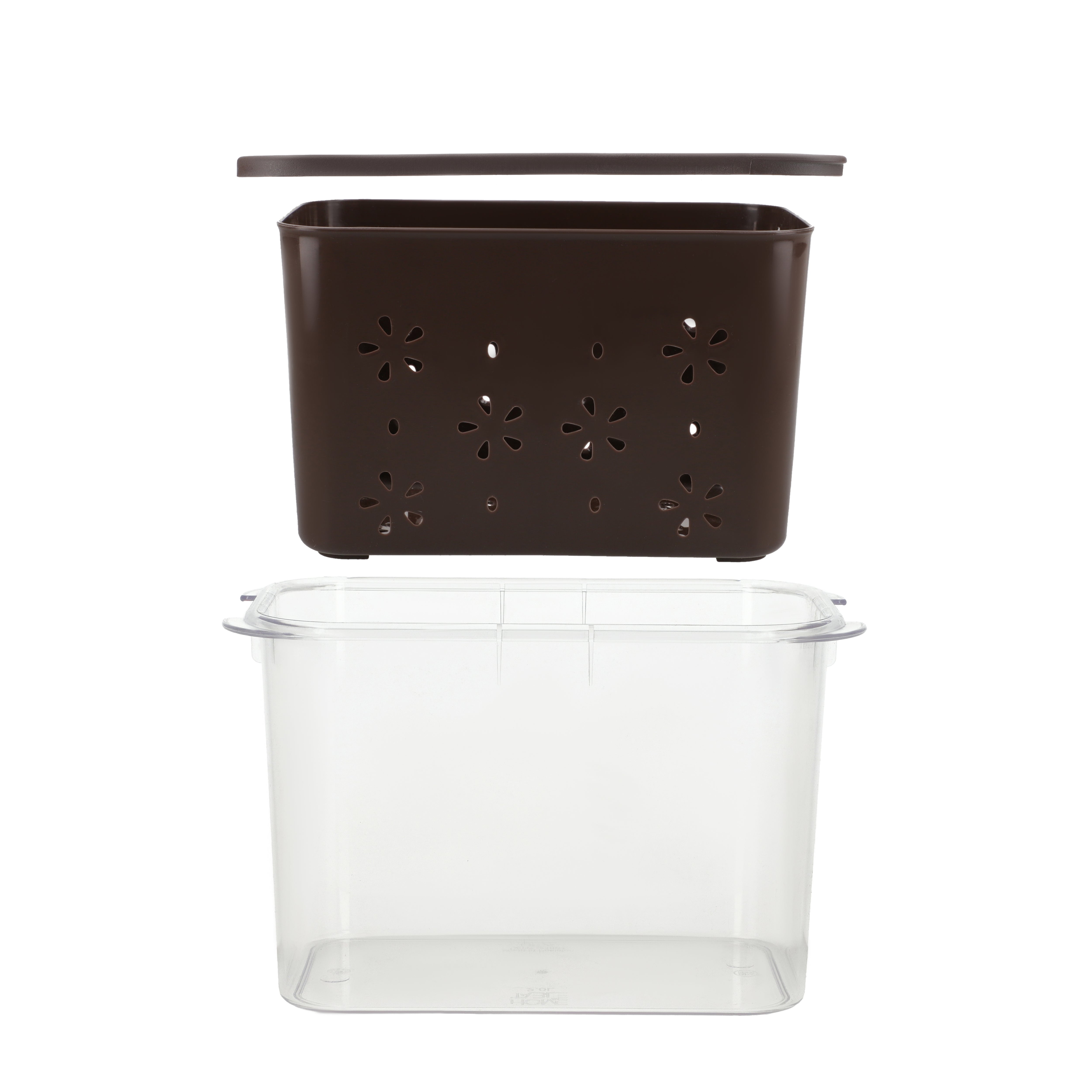 Dimensions and Packaging: Measuring 5 inches in length, 8.5 inches in width, and 5.5 inches in height, the Strainer+Storage Box provides generous storage capacity while maintaining a compact size. Each box is carefully packaged in cartons, with 6 units per carton, ensuring safe transportation and handling. The carton dimensions are 16 inches in length, 17 inches in width, and 21.5 inches in height, with a total cubic meter of 0.096.