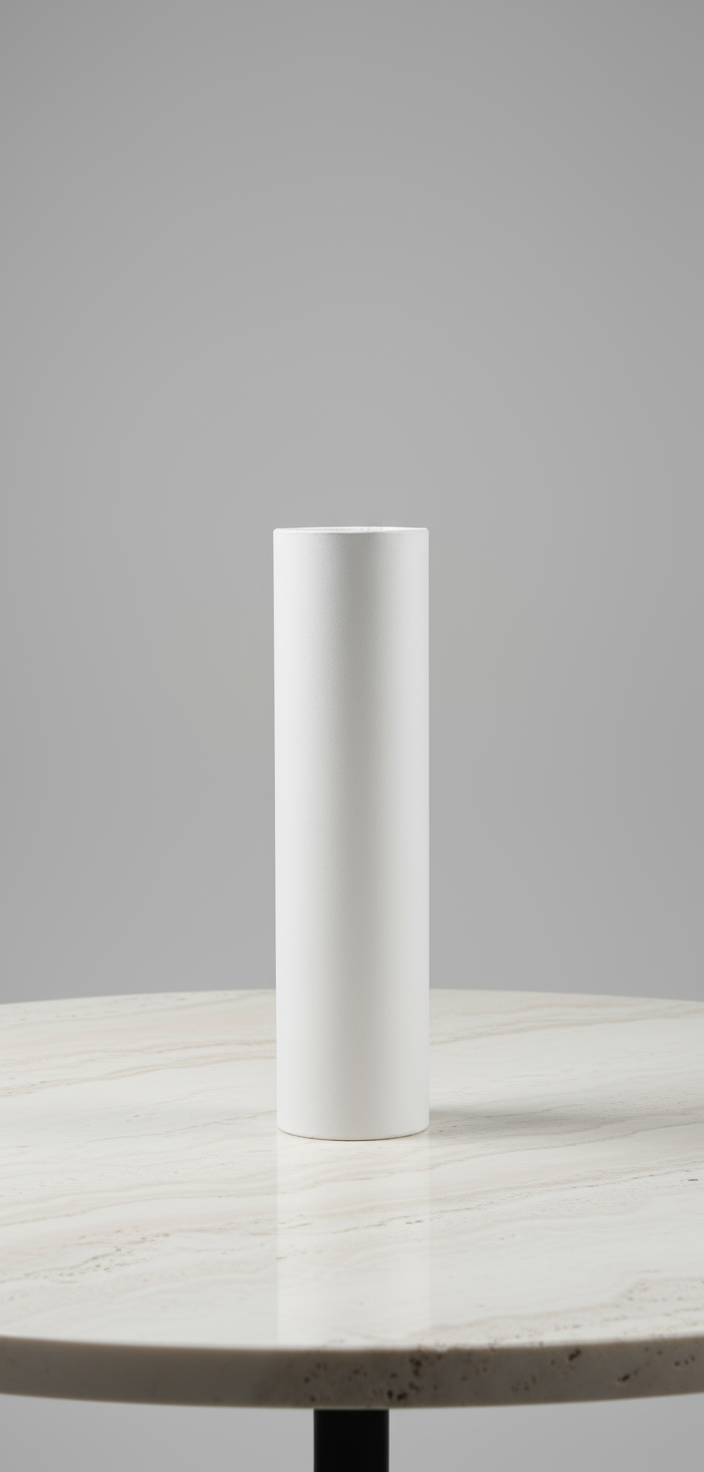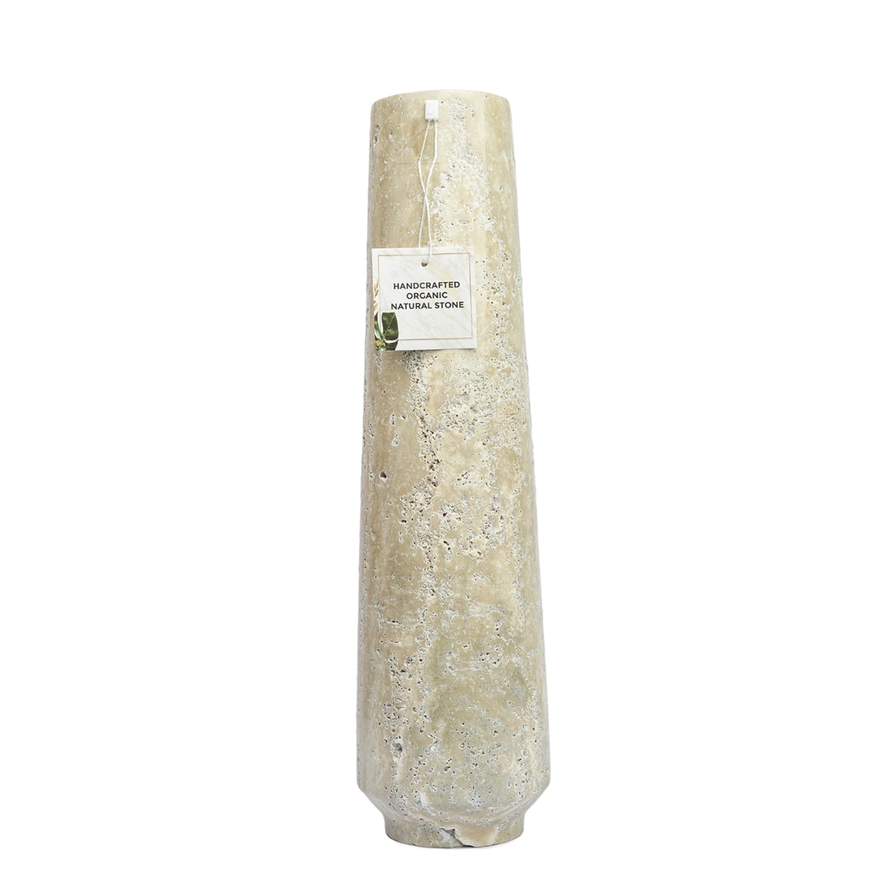 CYLINDER VASE 4×4×15 Crafted from premium white marble and travertine, featuring an elegant design with timeless appeal.